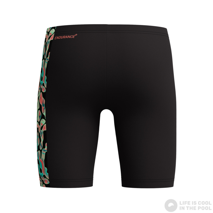 El material ECO Endurance + (53% poliéster y 47% polibutileno) proporciona comodidad durante la natación y se caracteriza por su gran resistencia. El bañador está hecho de un material respetuoso con el medio ambiente. Es un material fabricado con poliéster reciclado. Es 100% resistente al cloro, absorbe menos agua, se seca muy rápidamente y mantiene su forma y color durante mucho tiempo para el uso diario. El material es hasta 20 veces más duradero que los materiales convencionales. El bañador hecho de este material es más resistente a roturas y golpes. El material es adecuado para entrenamientos y competiciones de natación.